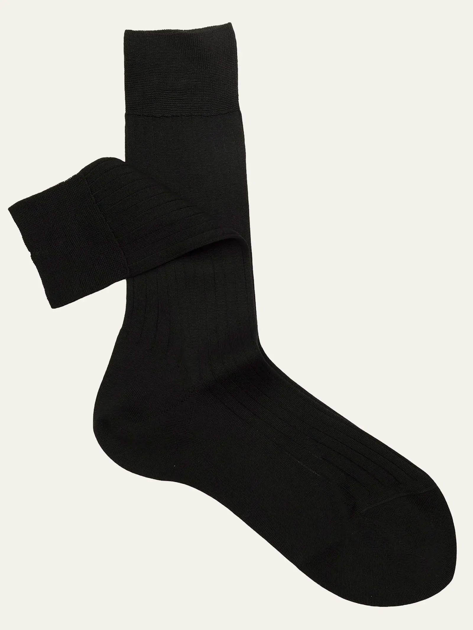 Classic Rib Mid Calf Socks 100% Filo Scozia Cotton Black